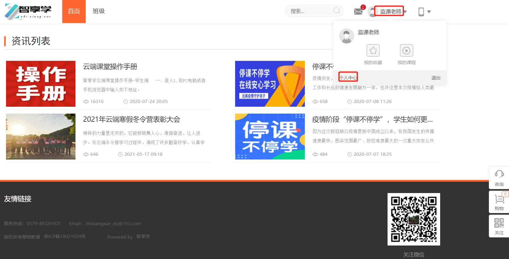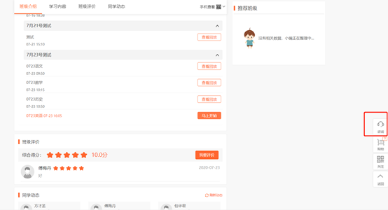 2.如果有其他无法处理的问题可以进行在线咨询,在网校右下角点击《咨询》,可以qq在线反馈问题。