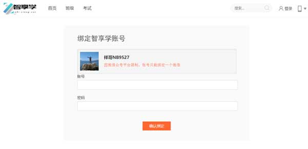 4.第一次通过微信扫码登录,需要绑定账号。注意:因众号平台限制,直播账号只能绑定一个微信账号,绑定后只能使用该微信账号观看直播,家长确认绑定为学生自己的微信还是家长微信,一旦绑定后无法修改。